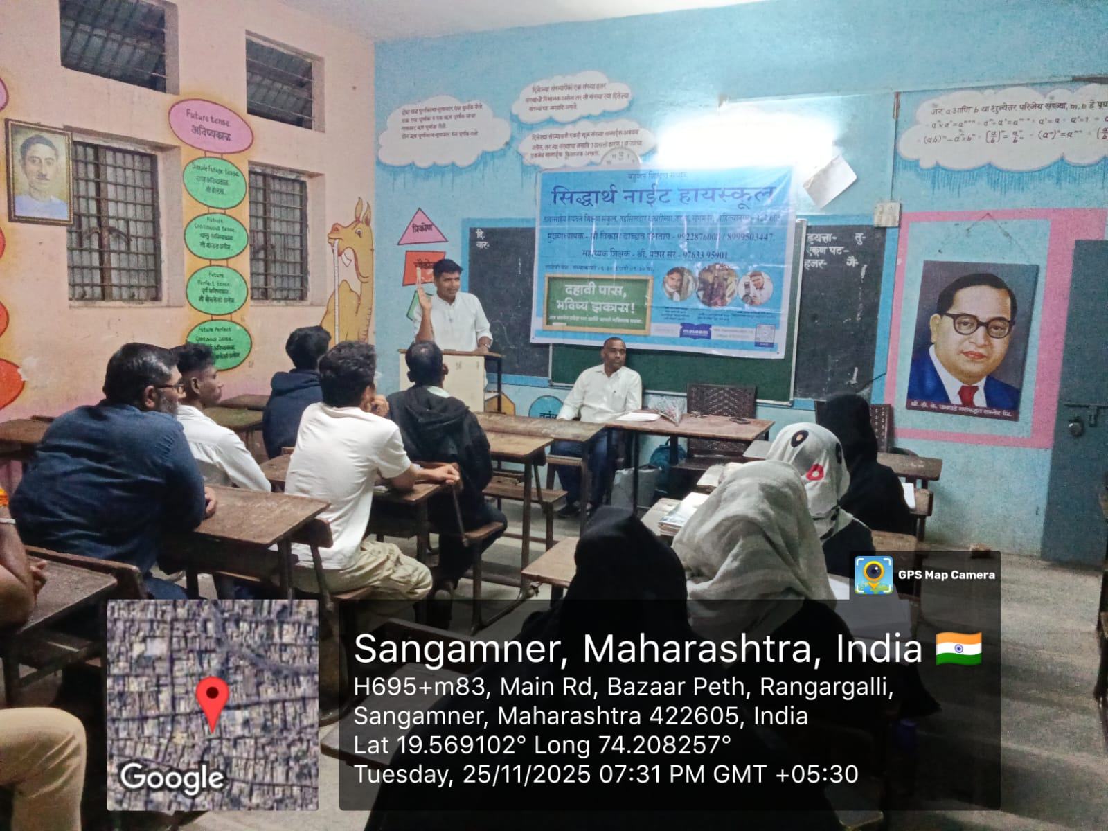 बहुजन शिक्षण संघ संचलित सिद्धार्थ नाईट हायस्कूल, संगमनेर येथे ‘स्वच्छ महाराष्ट्र अभियान – नागरी 2.0’ अंतर्गत कचरा व्यवस्थापन जनजागृती कार्यक्रम उत्साहात पार पडला. संगमनेर नगरपालिकेचे स्वच्छता दूत व प्रशिक्षक तसेच छात्रभारतीचे सक्रिय कार्यकर्ते अनिकेत घुले व मोहम्मद तांबोळी यांनी विद्यार्थ्यांना स्वच्छतेचे महत्त्व पटवून दिले.