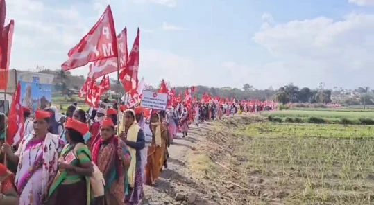किसान सभा, सीआयटीच्या नेतृत्वाखाली राजूर येथून अहिल्नयागरच्या दिशेने निघालेला कामगार, आदिवासी शेतकऱ्यांचा दीडशे किलोमीटरचा लाँग मार्च आता अधिक तीव्र होत असून “आता थांबायचे नाही, चालतच राहायचे; न्याय हक्कासाठी लढत राहायचे” असा निर्धार करत काही अवघ्या काही तासात संगमनेर प्रांत कार्यालयावर धडकणार आहे.