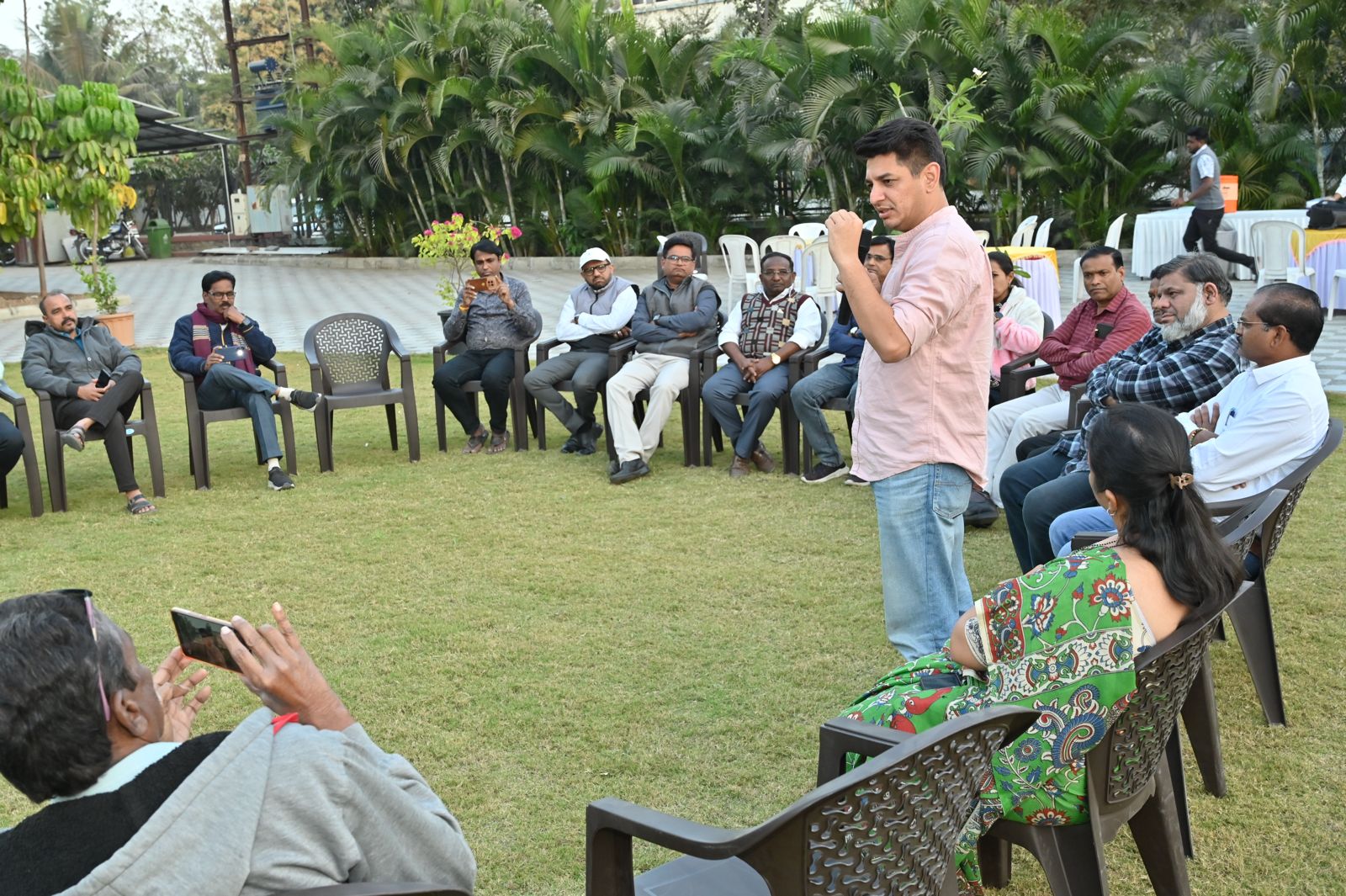 पत्रकारांचे भाव विश्व उलगडून घेण्याचा भावनिक नि प्रामाणिक प्रयत्न आमदार सत्यजीत तांबे, नगराध्यक्षा डॉ. मेथिली तांबे , माजी नगराध्यक्षा दुर्गा तांबे यांनी केला. पत्रकारितेच्या झगमगाटामागे दडलेली आव्हाने, संघर्ष, ताणतणाव यांची जाणीव ठेवत एक औचित्यपूर्ण स्नेहसंवाद घडवून आणला. सुख दुःखांची देवाण घेवाण झाली आणि पेटली एक नव्या विचारांची शेकोटी. ती राजकारणाची चर्चा नव्हती, तर प्रत्येक पत्रकारांच्या जीवनाची एक एक खरी बातमी समोर येत होती. बोचऱ्या थंडीतल्या त्या रम्य संध्याकाळी शब्दांना देणारी ऊब होती. डोलाने उभ्या राहिलेल्या आजूबाजूच्या भिती, झाडे, पानफुले ही जणू कान देऊन ऐकत होती. आमदार सत्यजीत तांबे जणू एका रिंग मास्टरप्रमाणे शब्दांची सूत्रे हातात घेत होते. पण हे सूत्र नियंत्रणाचे नव्हे, तर समन्वयाचे होते. पत्रकारांच्या वैयक्तिक, कौटुंबिक, आर्थिक आणि व्यावसायिक आयुष्याच्या चढ उतारांचा आलेख त्यांनी आपुलकीने समजून घेत पत्रकारांशी आपुलकीचा सेतू त्यांनी यावेळी उभारला.