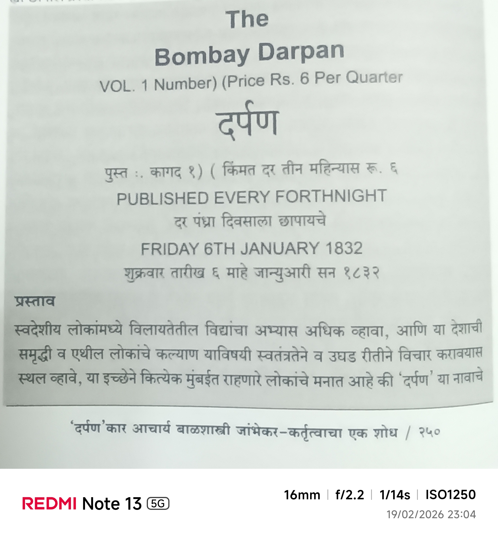 दर्पणकार आचार्य बाळशास्त्री जांभेकर : कर्तृत्वाचा एक शोध – रवींद्र बेडकिहाळ