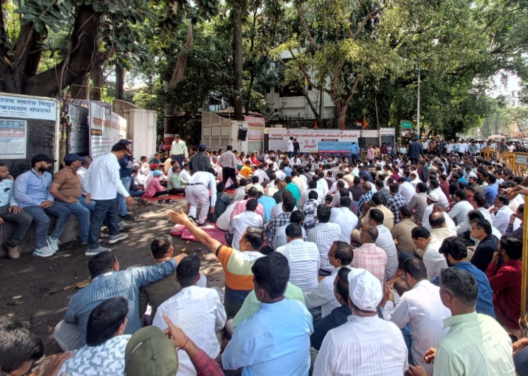 वीज वितरणाचे कर्मचारी तीन दिवस राज्यव्यापी संपावर ; कार्यालयात सुकसुकाट ; कर्मचाऱ्यांनी दाखवली एकजूट
